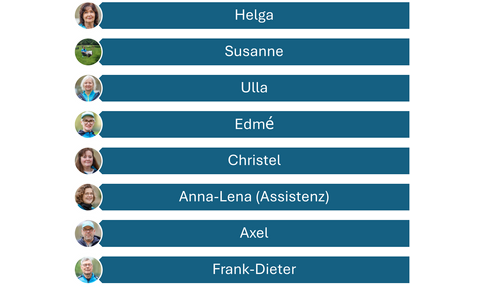 von links - obere Reihe: Edme Lohmann (Kassiererin), Frank-Dieter Zech (Geschäftsführer, Jutta Holtermann (Kommissarische Platzwartin), Axel Peddinghaus (Ausbildungswart), untere Reihe: Ulla Sandmann (2. Vorsitzende), Helga Noack (1. Vorsitzende)